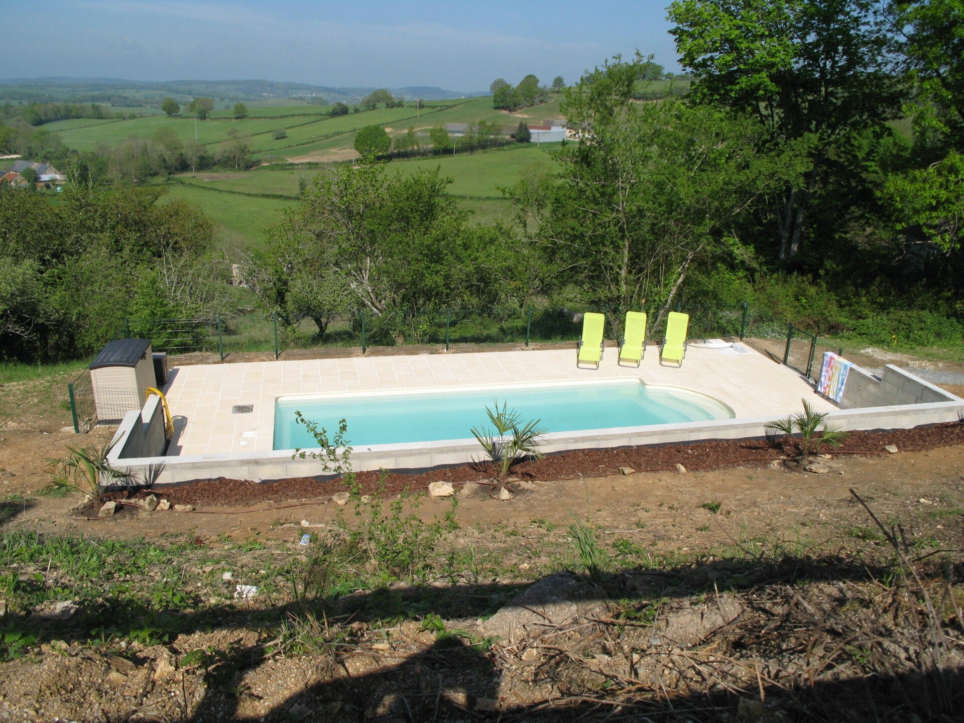 Het verwarmde zwembad is voor de gites en de camping en op basis van elektrolyse.